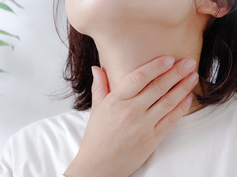 - 甲状腺の腫れに伴う首の圧迫感や違和感
