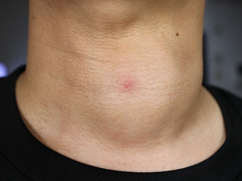 - 首の前側の腫れや膨らみ